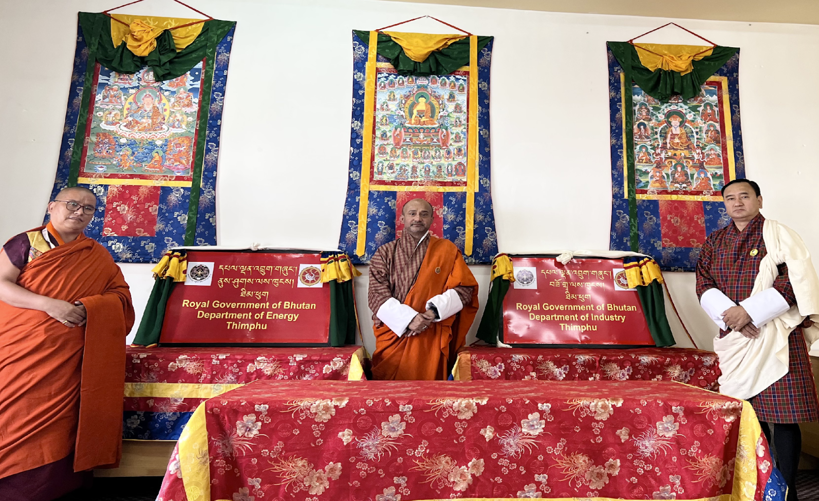 With approval of the Lhengye Zhungtshog and RCSC, the Ministry of Economic Affairs has merged the Department of Industry and Department of Cottage & Small Industry as the Department of Industry; and the Department of Renewable Energy and Department of Hydropower and Power Systems as the Department of Energy in a a simple ceremony on 2nd October 2022. The ceremony was graced by the Hon’ble Tengye Lyonpo and attended by the Secretary, MoEA; Focal Commissioner, RCSC; heads of the Departments and officials of the Ministry.