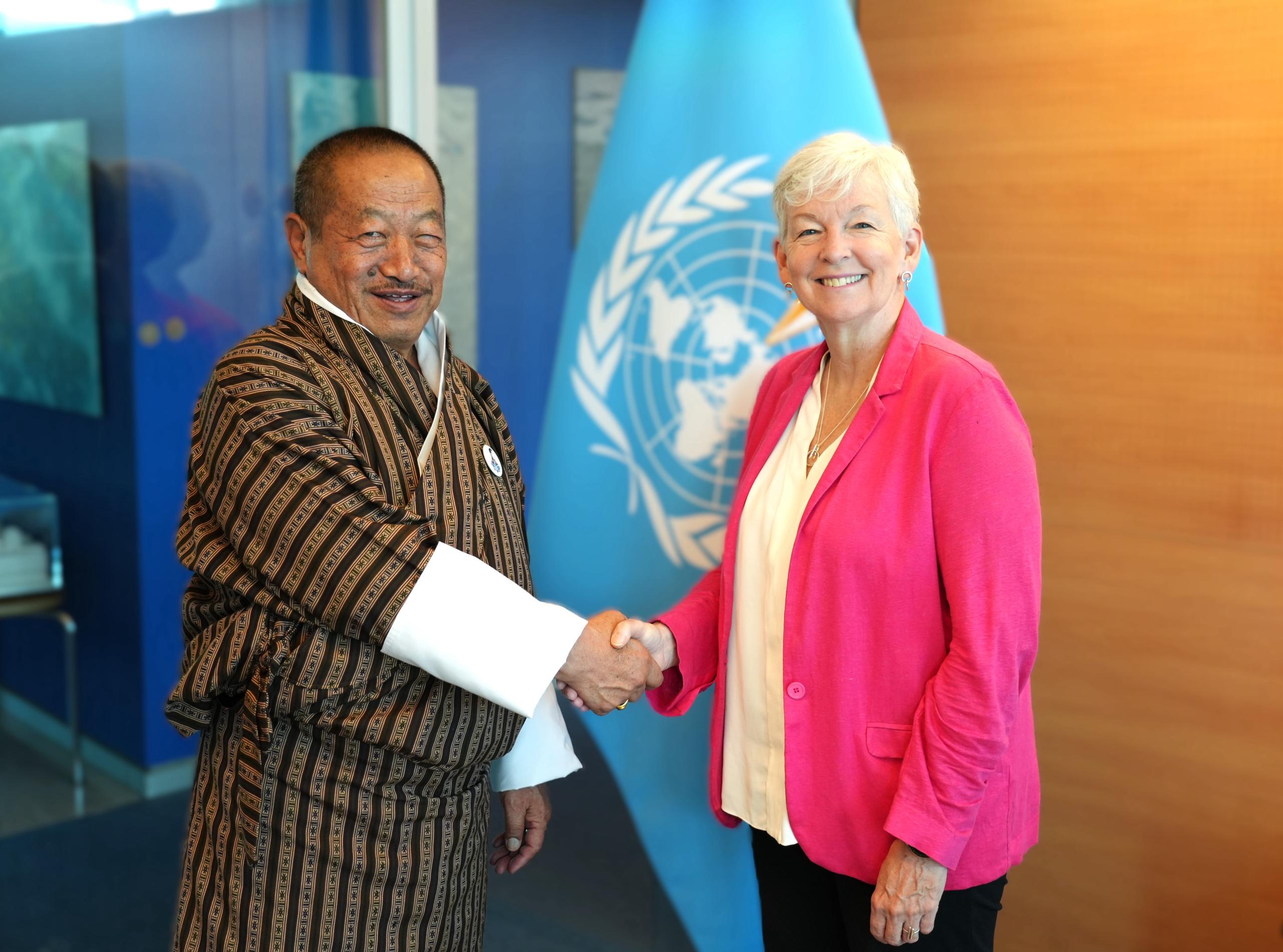 On 14th August 2025, Ms. Ko Barrett, the Deputy Secretary General of World Meteorological Organization (WMO), called onto Hon’ble Lyonpo, Ministry of Energy & Natural resources. Arranged on the sidelines of the on-going INC 5.2 Plastic Treaty negotiation in Geneva, Switzerland, the meeting is expected to reinforce Bhutan’s long-standing partnership with WMO.